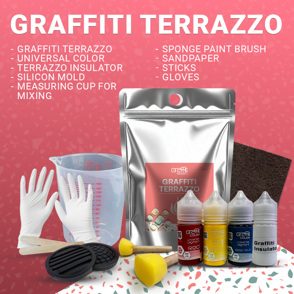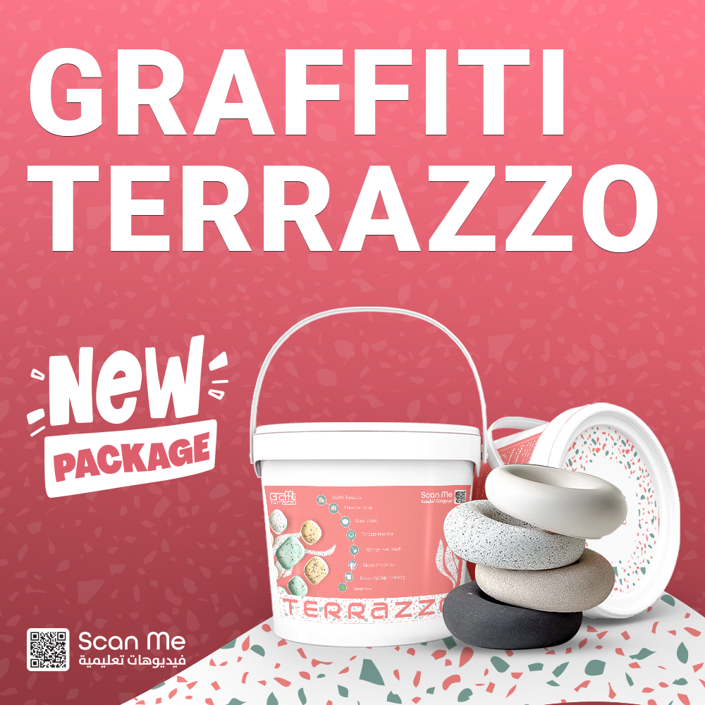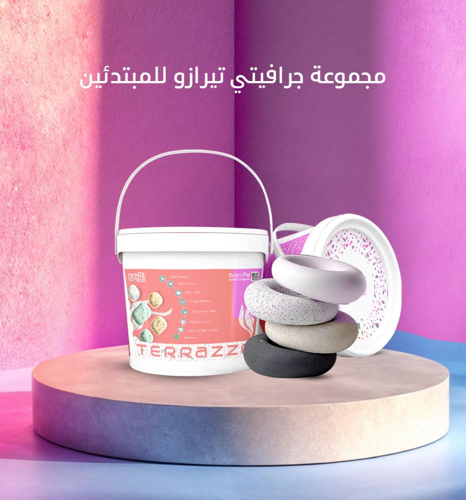 • عبوة جرافيتي تيرازو: قلب مجموعة التيرازو، هذه العبوة تحتوي على مادة التيرازو عالية الجودة والسهلة الاستخدام، والتي ستكون أساس أعمالك الفنية.